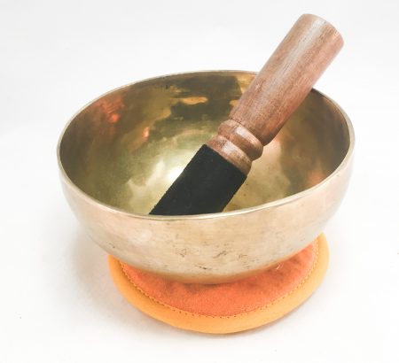 This bowl is a hand-hammered therapy bowl that has a mat polish finish.