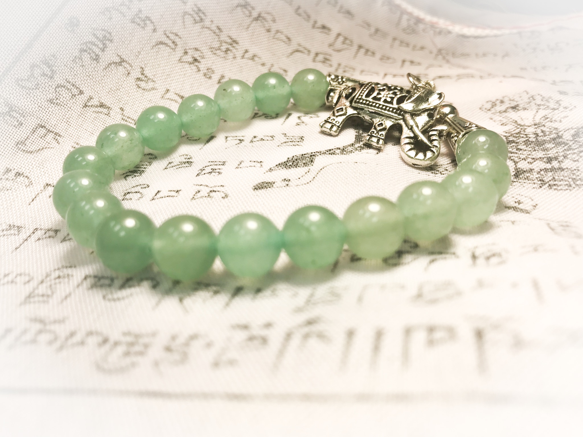 This Jade bracelet is made with a stretch elastic band, and has an elephant charm.