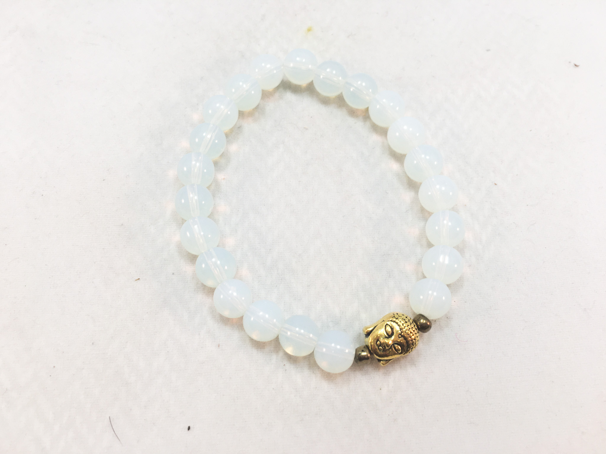 This opaline elastic bracelet is great for enhancing intuition and has a rainbow shimmer when held in the light.
