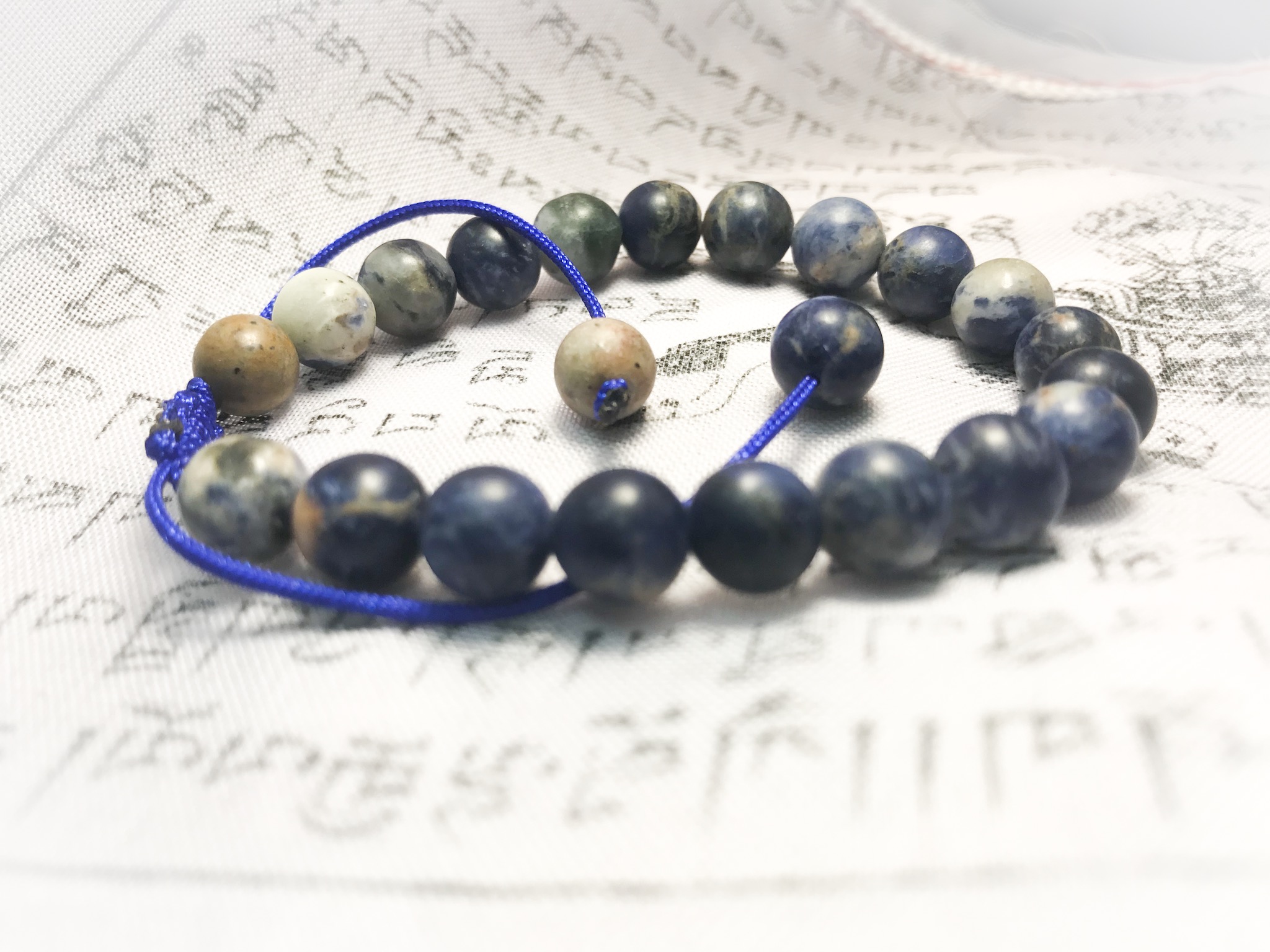 This sodalite bracelet is adjustable for any wrist size.